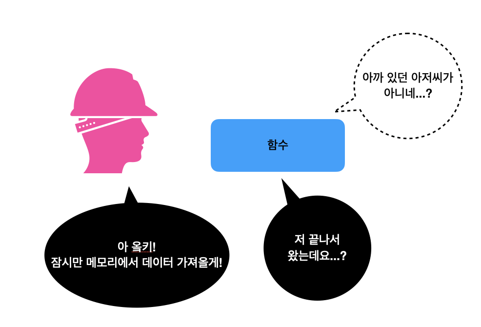 우선 동작을 알아보기 전에 함수를 실행하게 되면, 저희 모두 스택에 쌓이게 된다는 것을 알 것입니다. (몰라도 괜춘!)